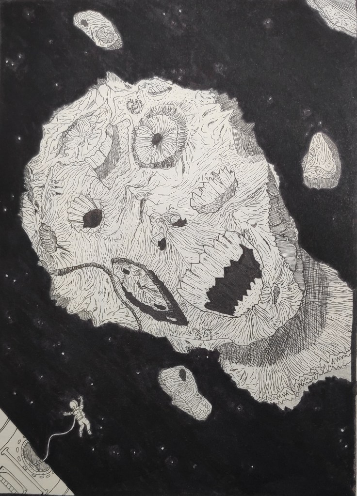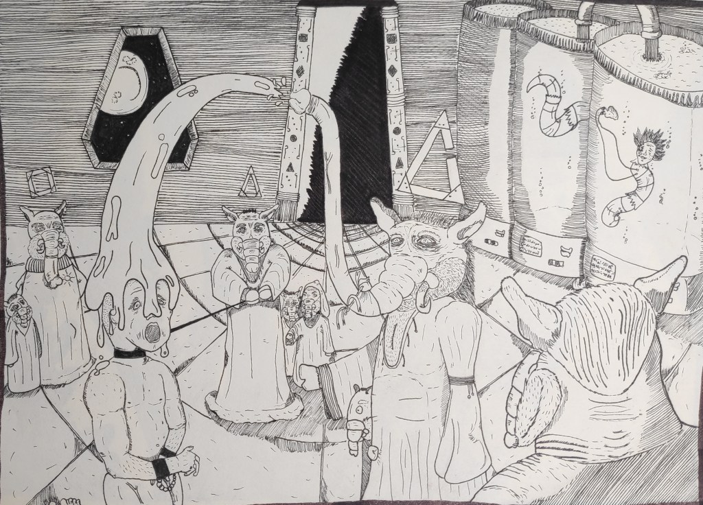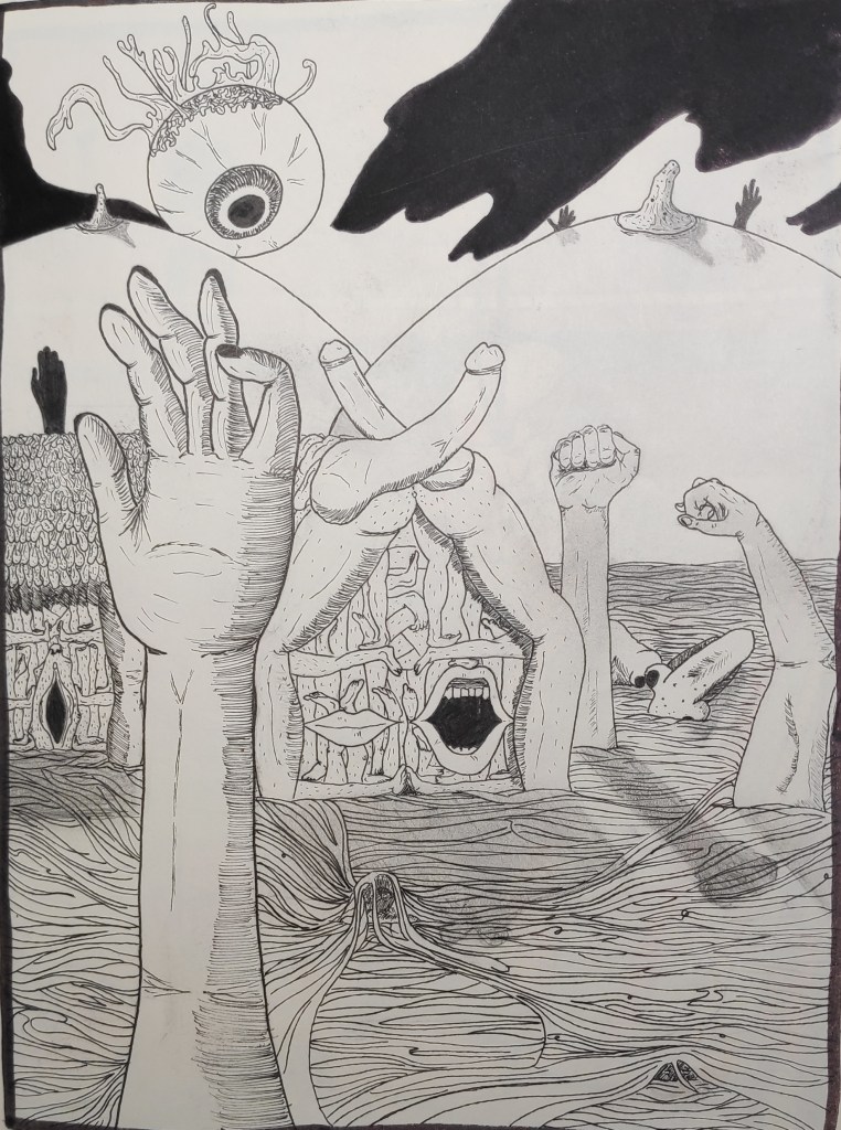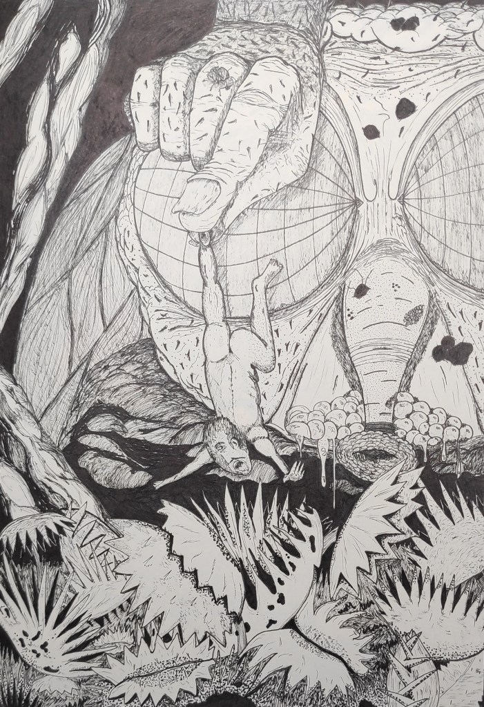initiatique. Imaginé au départ comme un refuge et une réaction à un besoin latent de créer sans entraves, il est devenu au fil des mois et des années tout autant un espace d’élaboration d’une identité artistique qu’un défi personnel: couvrir d’encre les 59 pages de ce qui n’était alors qu’un modeste carnet vierge à l’aide de quelques feutres.