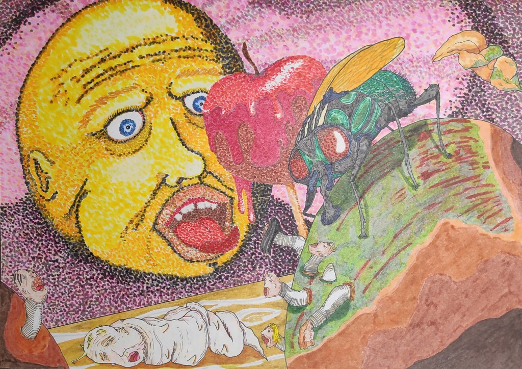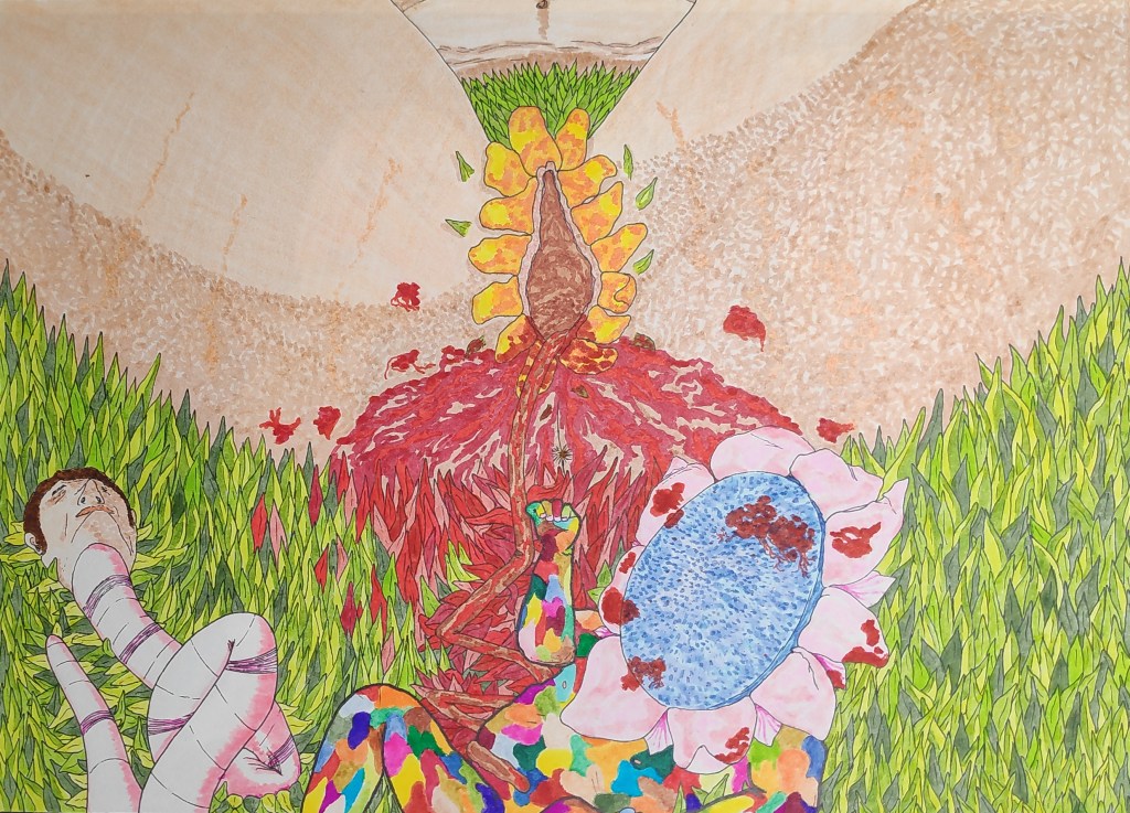 Sorte de compilation de dessins d’enfant, dont l’oeil se serait ouvert trop vite sur la violence du monde – débarrassé du voile de l’innocence, Violences Multicolores s’offre maintenant au regard de tout un chacun.e, couvert de ses propres filtres, pour inspecter et interpréter les méandres lumineux du carnet.